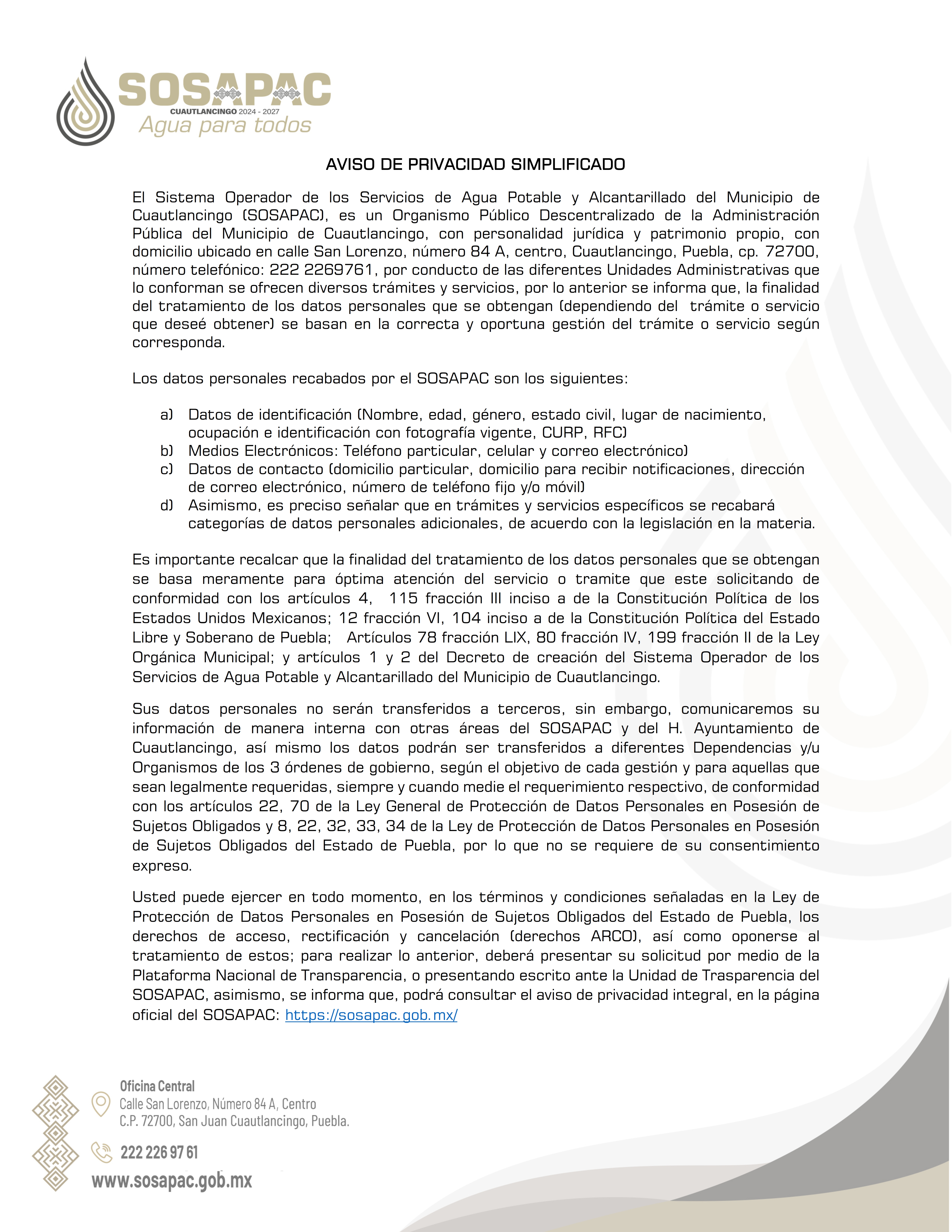 •   Calle San Lorenzo No. 84 A, Centro. Cuautlancingo, Puebla.
